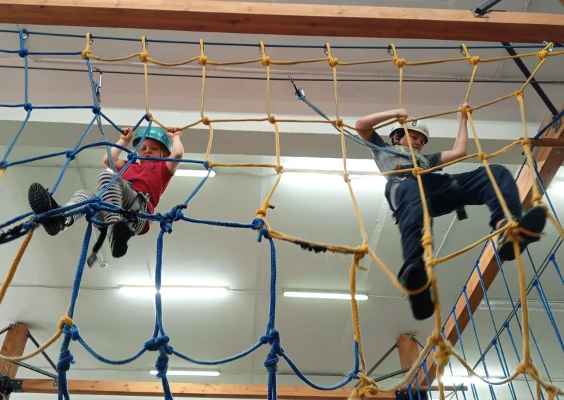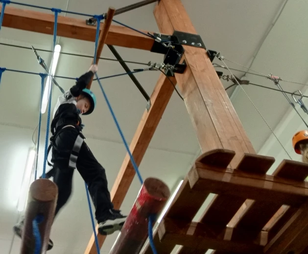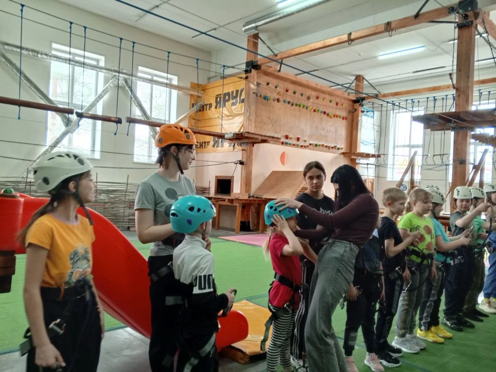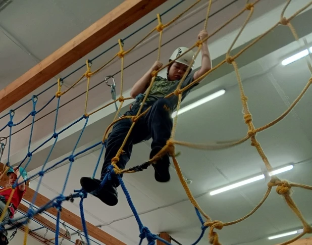 Юные спортсмены проявляли смелость, ловкость и силу духа, осваивая каждый новый уровень маршрута. Атмосфера была наполнена азартом, смехом и радостными криками от каждого успешного преодолённого испытания.