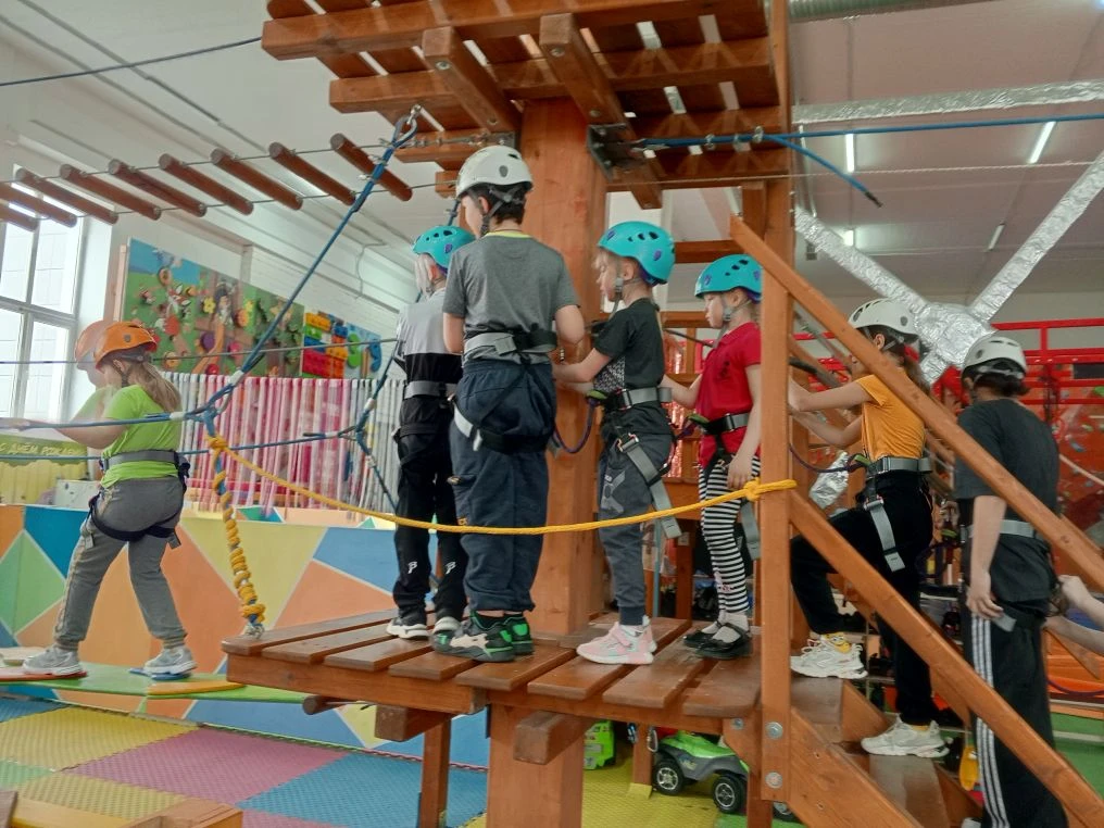 Маленькие экстремалы испытали настоящие приключения и море позитивных эмоций, преодолевая разнообразные препятствия верёвочных трасс на разных уровнях высоты.