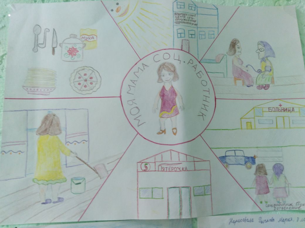 Цель акции – повышение престижа профессии «социальная работа» среди подрастающего поколения. Все ребята очень старались порадовать своих мам и бабушек рисунками, и это им удалось.
