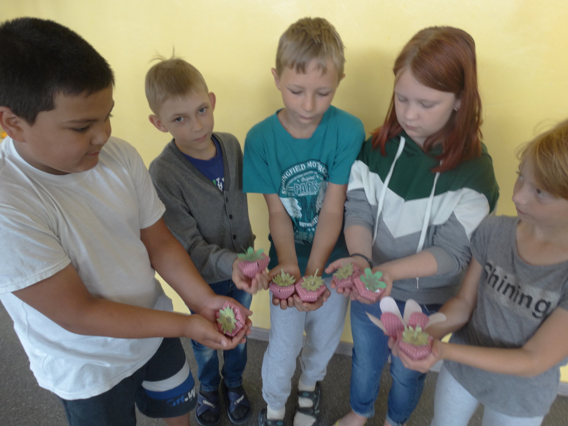 Благодаря своей фантазии, каждый из ребят сделал свою неповторимую и красивую «Земляничку», в которую положили бумажки с пожеланиями и конфетами, чтобы подарить коробочку с сюрпризом своим родным и близким.