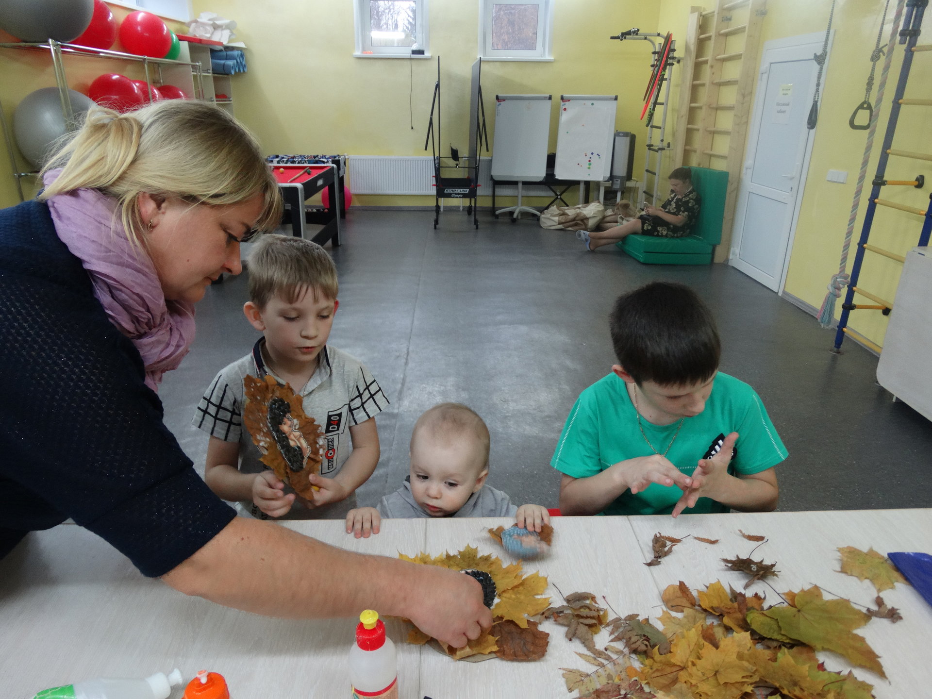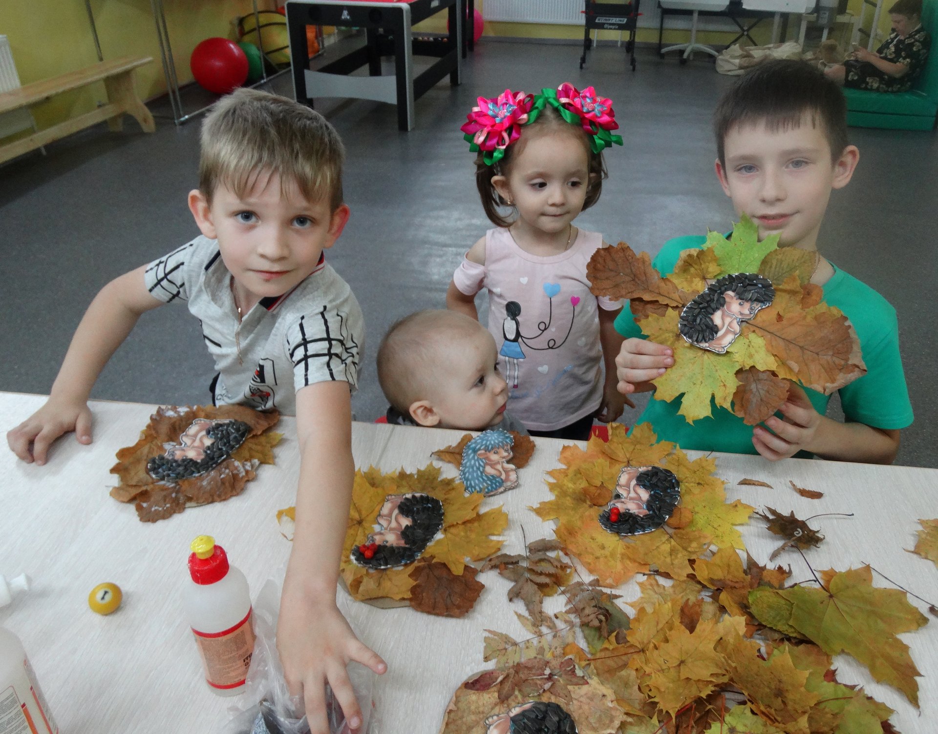 10 октября специалистами «Комплексного центра социального обслуживания населения Суздальского района» для деток на базе семейного инклюзивного центра «Радуга» был организован мастер-класс по изготовлению аппликации из природных материалов. Осенняя пора очаровывает нас своими красками, вдохновляет на творчество. Важно не пропустить  этих мгновений. Как не использовать дары природы, которые окружают нас повсюду. Из всего разнообразия красочных листьев, семечек, рябины дети старательно создавали аппликацию «Ежик в осеннем лесу». Создавая композиции,  научились комбинировать цвета, проявлять фантазию. Во время интересного и увлекательного занятия к детям с большим удовольствием присоединились ребята, проживающие в учебной квартире  сопровождаемого проживания для молодых людей с инвалидностью  АРДИ «Свет».  В процессе творчества  они  сплотились в  дружный коллектив, придумывая забавную историю о персонажах, которые получились.